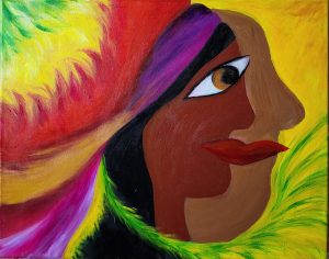 Sarbjit was born in 1962 in Punjab, India. She came to Britain at the age of eight and lived much of her early life in Southall, during which time her father worked for London Transport on the buses and her mother in factories and later as a hospital cleaner. She wrote the following in an introduction to an exhibition of her paintings held in The Dominion Centre, Southall:‘Some of my earliest memories are of being taken by bus from Featherstone Road, out of Southall and all the way to Wood End Juniors in Northolt. This was under the notorious racist ‘bussing’ system imposed on Asian children in Southall and other places….I remember my friend telling me how awfully her mum was treated at the Wall’s factory…I have memories of my dad working on the 207 bus and how proud I felt when in one of the school holidays he took me with him, and I sat in the bus while he gave bus tickets. Later I remember the sweets with almonds my mum used to bring home after working at the Nestle sweet factory in Hayes…The racist 1981 Nationality Act restricted the right to British citizenship for many people of colour living here. I remember that day (of the protest against the Act) as I so much wanted to go, but knew I wouldn’t be allowed. Instead my English boyfriend went, and told me how huge it was….I remember the weekends spent watching TV at home while dreaming of all the things I would do if I had the freedom I wanted…’