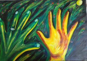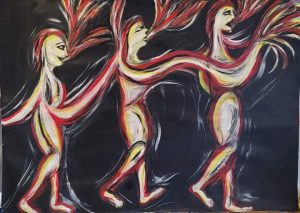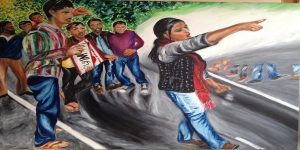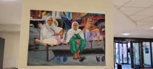 Alongside and intertwined with her activism, Sarbjit started painting in the 2000s and emerged as a talented artist. Many of her paintings portrayed movements and struggles in Britain, India and elsewhere, particularly those of women, and resistance to patriarchy in the family, while others portrayed her friends and family, and later she also painted a series of abstracts. A major exhibition of her work was held at Manchester Central Library in early 2022, incidentally coinciding with Sarbjit’s 60th birthday. She was also committed to sharing her skills and ideas, seeing art as open to everyone, and ran a series of art workshops to Asian women’s organisations across the country.